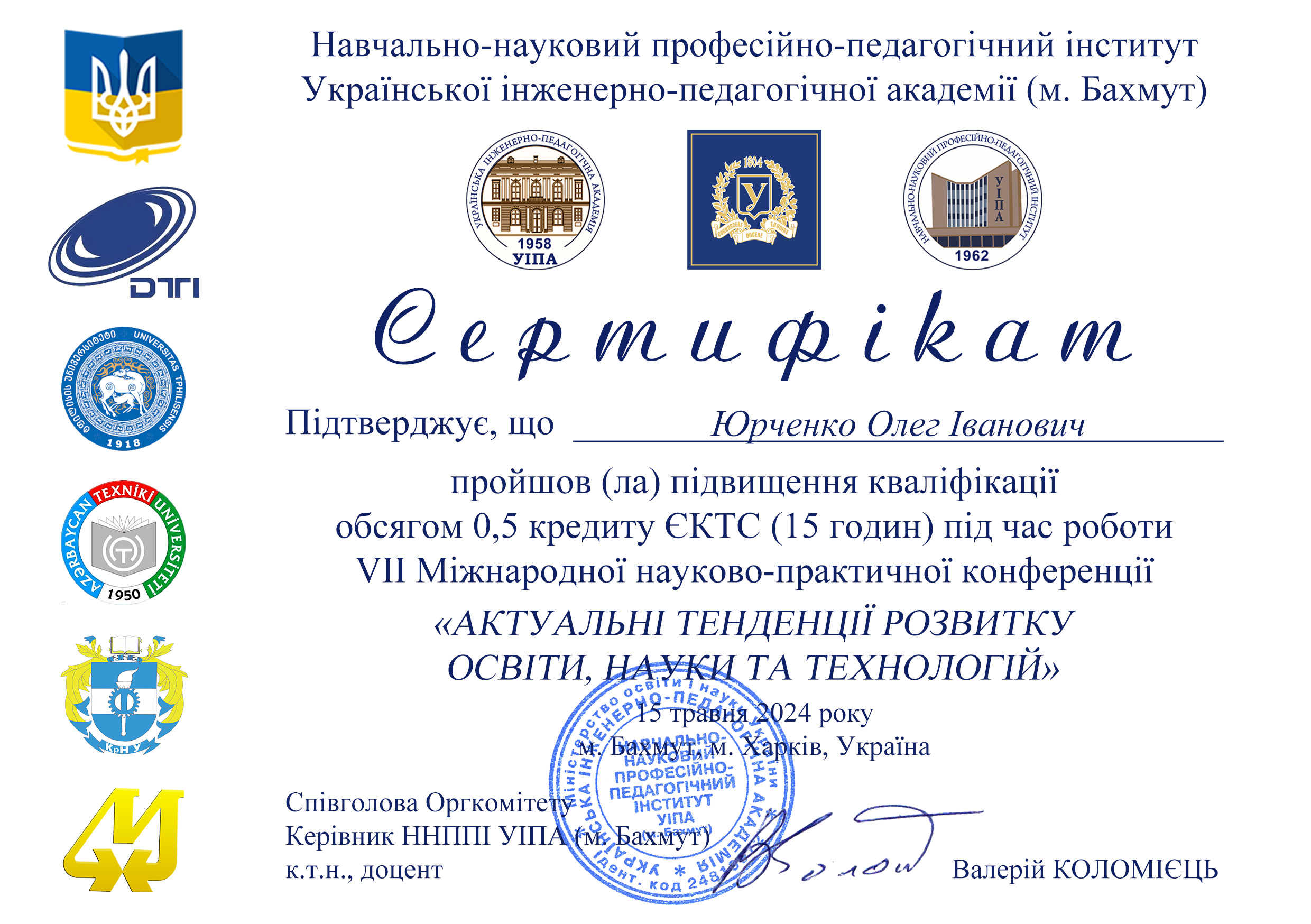 2. VII Міжнародна науково-практична конференція «Актуальні тенденції розвитку освіти, науки та технологій», 15 травня 2024 ( 15 годин )