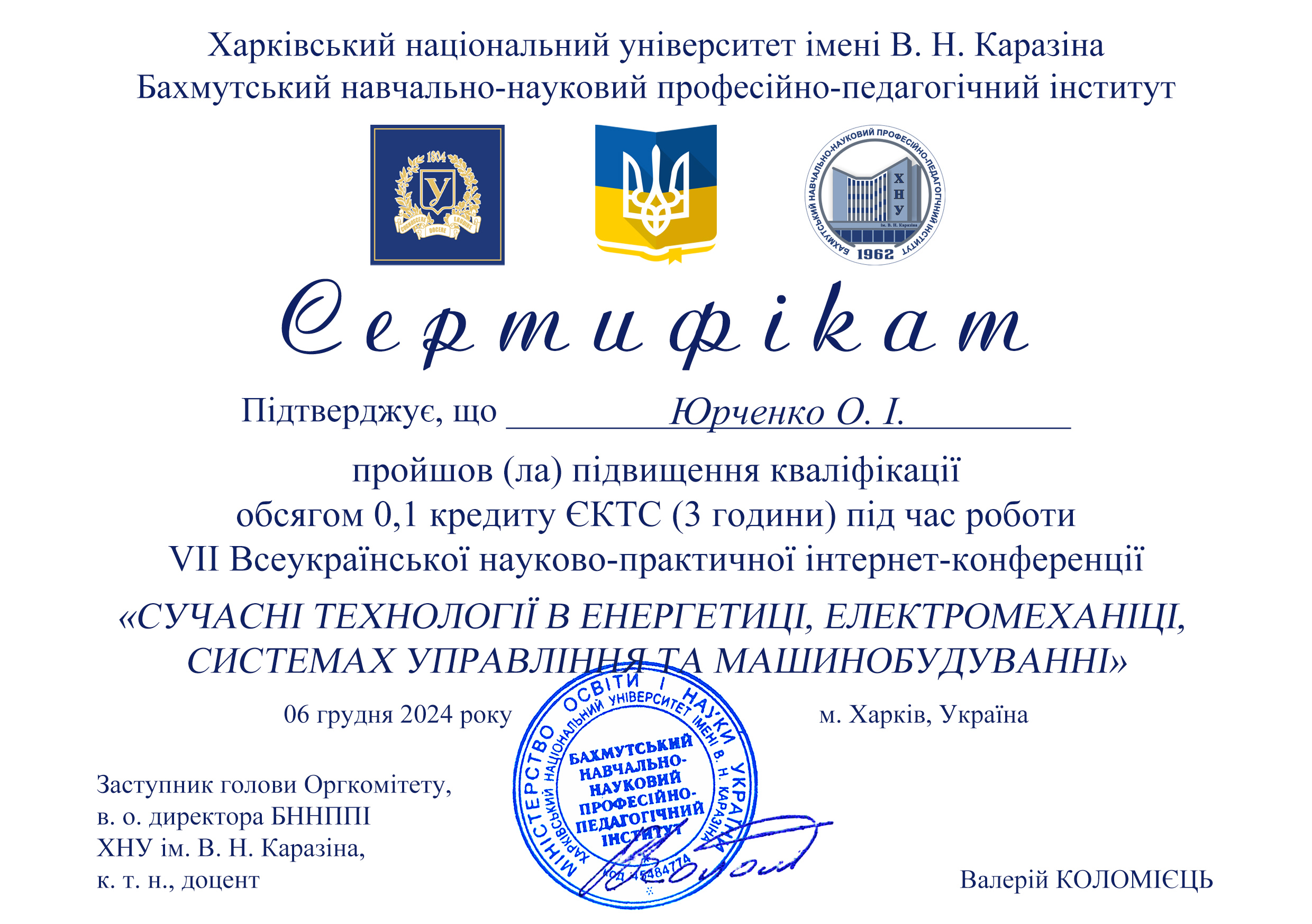 4. VІ Всеукраїнська науково-практична інтернет-конференція "Сучасні технології в енергетиці, електромеханіці, системах управління та машинобудуванні" (06-07 грудня 2023 р., 3 години )