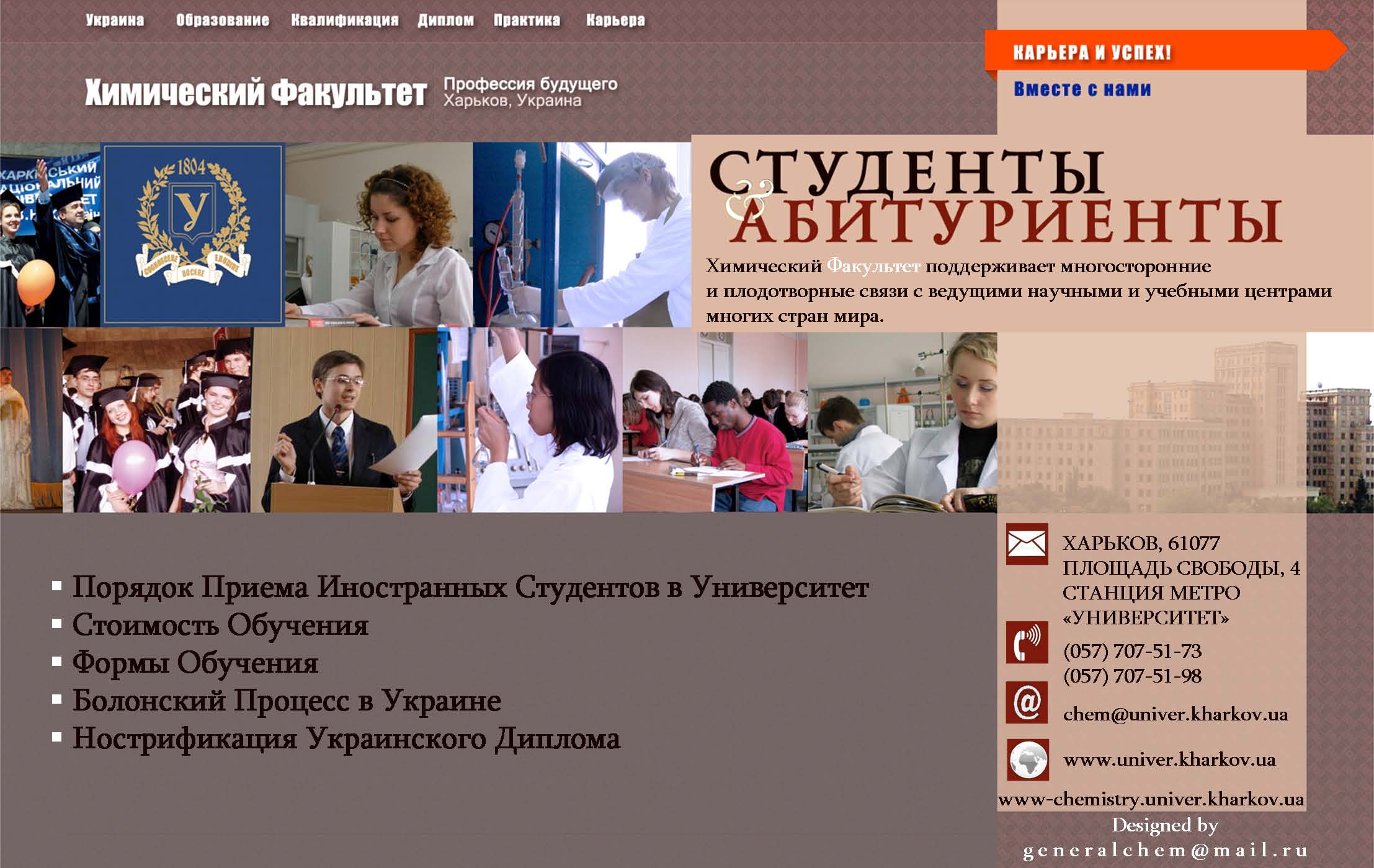 Хімічний факультет сьогодні – це високий рівень професорсько-викладацького складу, передові досягнення в науці, широке впровадження наукових досягнень в учбовий процес, високий матеріально-технічний рівень, співпраця з науково дослідницькими інститутами в містах України, Європи, США, Японії! Завдяки цьому, на нашому факультеті Ви отримаєте якісну освіту світового рівня і опануєте професією XXI сторіччя - професією хіміка!